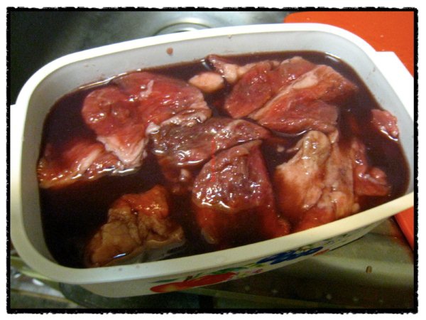 那天買了一大盒牛筋肉,家裡還有剩下的紅酒、洋蔥和馬鈴薯,那麼就來個紅酒燉牛肉吧