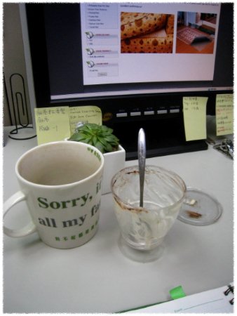 昨天下午寶貝敲我msn說要帶她做的提拉米蘇來公司,欣喜若狂的我在接著的一個半小時之內,腦子裡的提拉米蘇畫面像跑馬燈似的不停迴盪,也靜不下心辦公