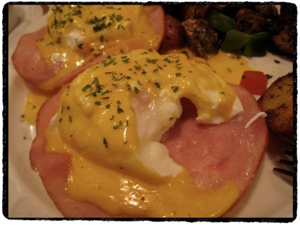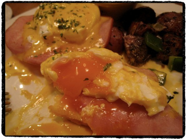 最愛的未熟蛋!班尼迪克蛋的作法很像福州麵的蛋包湯。水煮但蛋黃還可保留未熟,緩緩滑出的瞬間真令人感動!