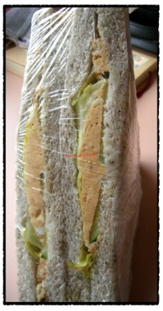 所以呢,我就意思意思買了一個鮪魚三明治(港名:吞拿沙律三文治,tuna salad sandwich,英譯到了一種極致啊!)和一個奶油菠羅囉